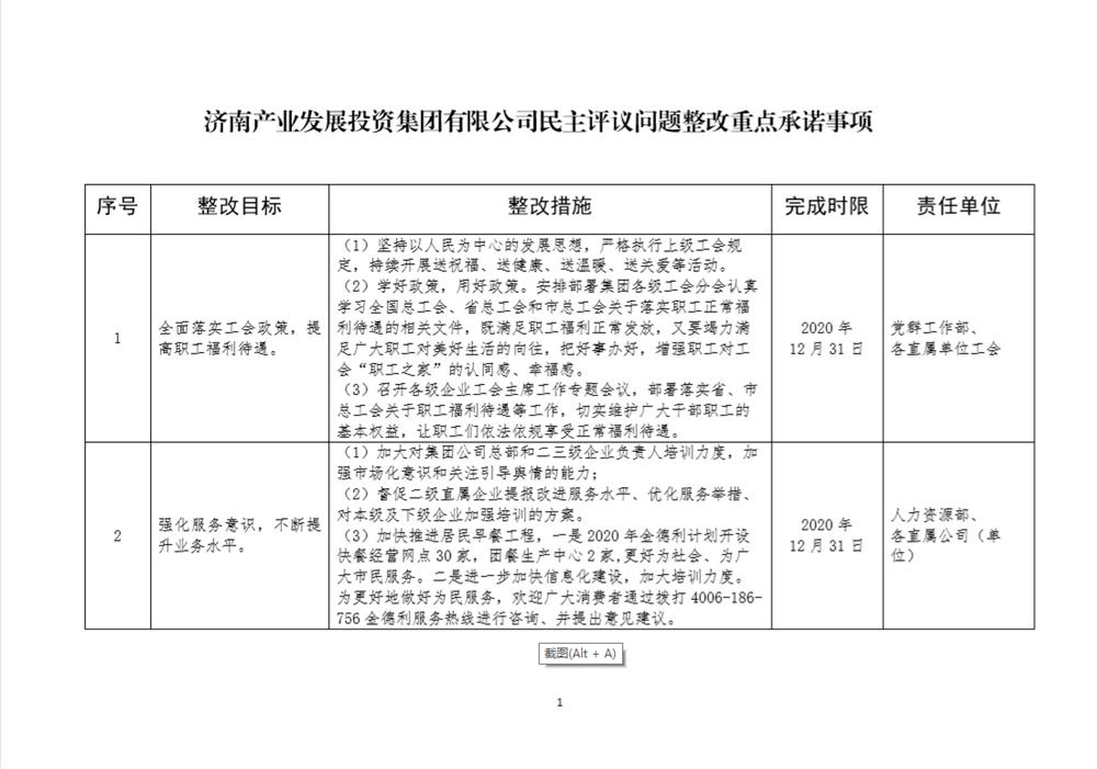 產發(fā)集團民主評議問題整改重點承諾事項